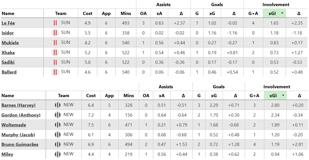 Over their last six Gameweeks, these are both sides’ best players for expected goal involvement (xGI):