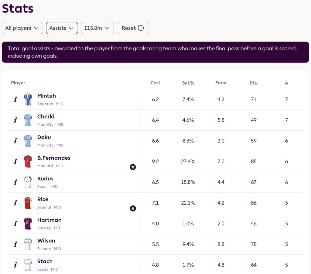 A constant threat to Palace’s defence, all of Cherki’s assists have arrived in the last seven Gameweeks.