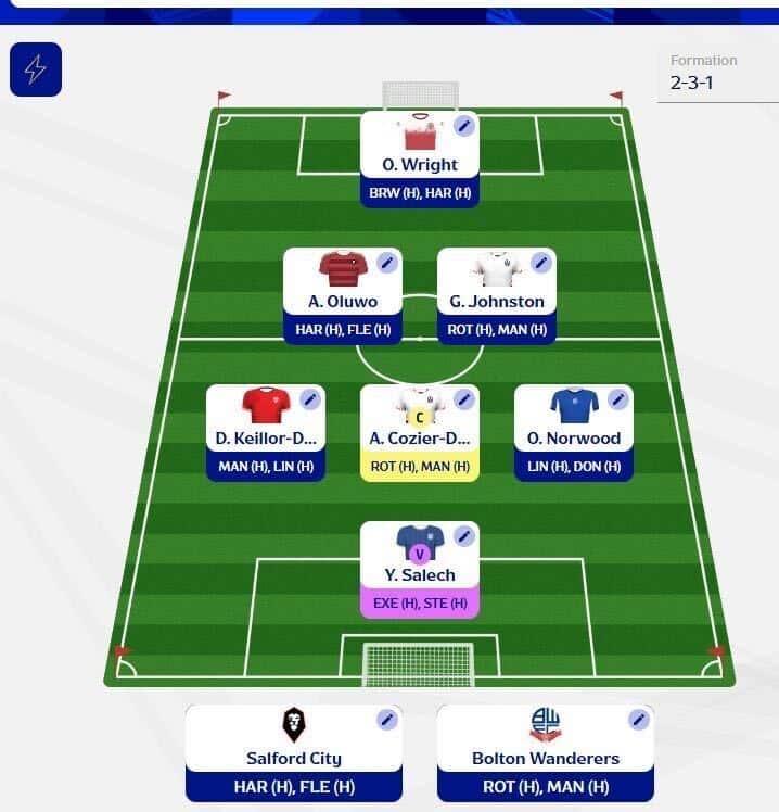 - For team picks, I’m backing Salford City and Bolton Wanderers. Both sides have strong fixtures and plenty of upside this week.