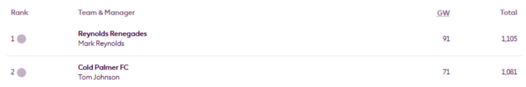 Meanwhile, Mark Reynolds (MIR) leads the FFScout Mods & Cons mini-league for a third week after triple-captaining Haaland.