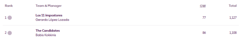 55,404 FPL managers participating in our Fantasy Football Scout and Fantasy Football Scout Members mini-leagues are now ranked in the live version.