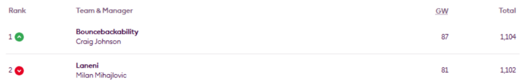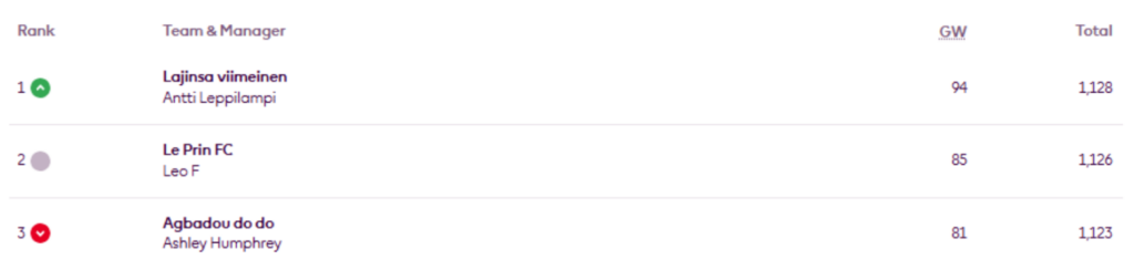 BT Did is the new leader of my Top 10k Any Season mini-league (code 6axmwm) and ranks 814th overall. They came 428th in 2019/20.