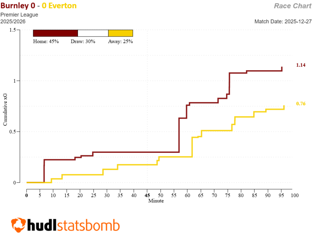 Everton did have six shots on target but didn’t even get to 1.0 xG, with a hauling Martin Dubravka (£4.0m) only twice seriously extended, making fine stops from Beto (£5.0m) and Thierno Barry (£5.7m).