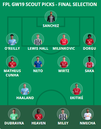 Here is our Scout Picks team (complete with cheap bench, as we’re on a £100m budget) as a rough guide to the players you may consider – but we’ll have a standalone article on the Free Hit to come over the next 18 hours or so.