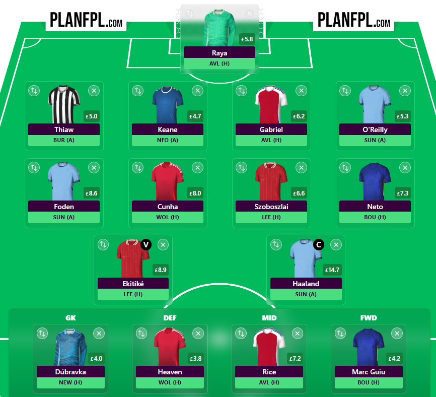 Pedro Neto (£7.3m) and Declan Rice (£7.2m) could become Bukayo Saka (£10.3m) and Kiernan Dewsbury-Hall (£5.0m), with the latter parked on the bench until he’s fit. Everton have some good medium-term fixtures beyond his comeback.