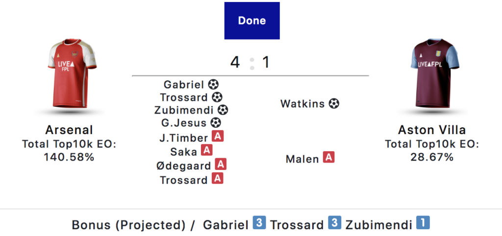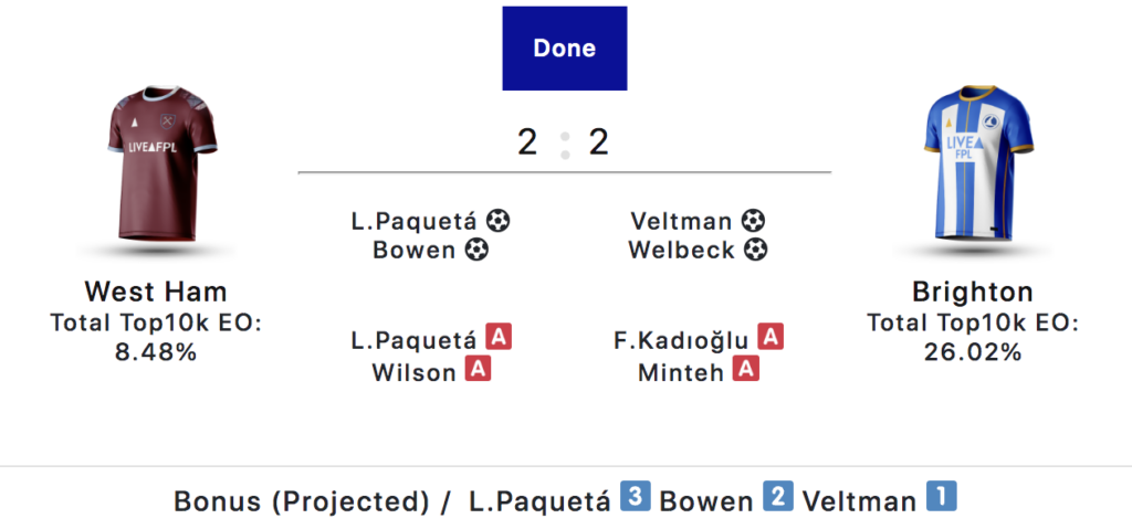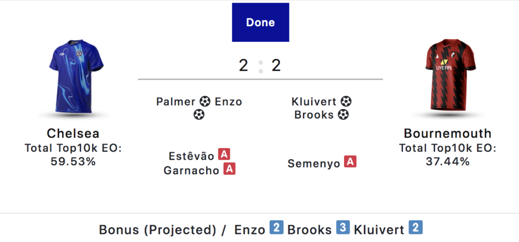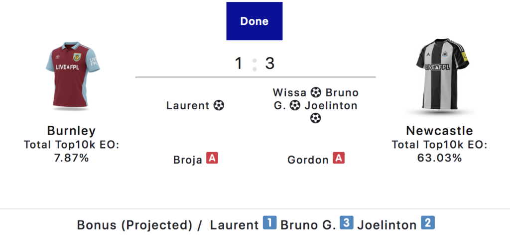 Meanwhile, the goals, assists and bonus summaries are from LiveFPL.