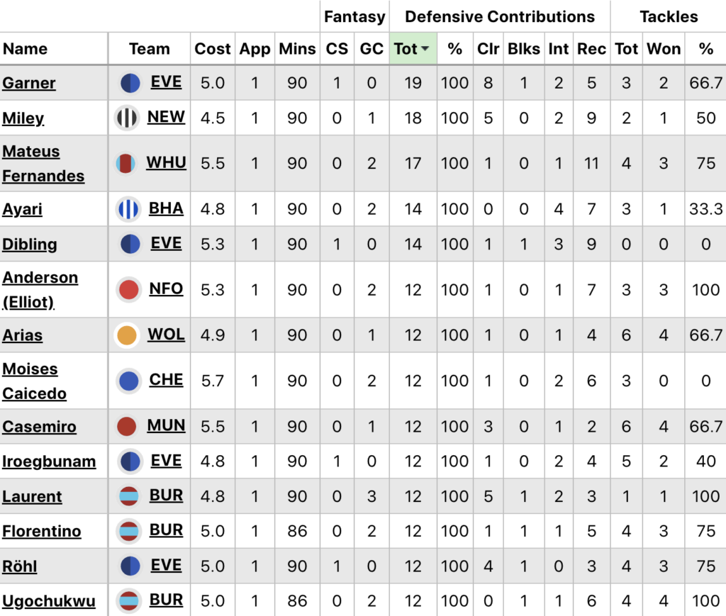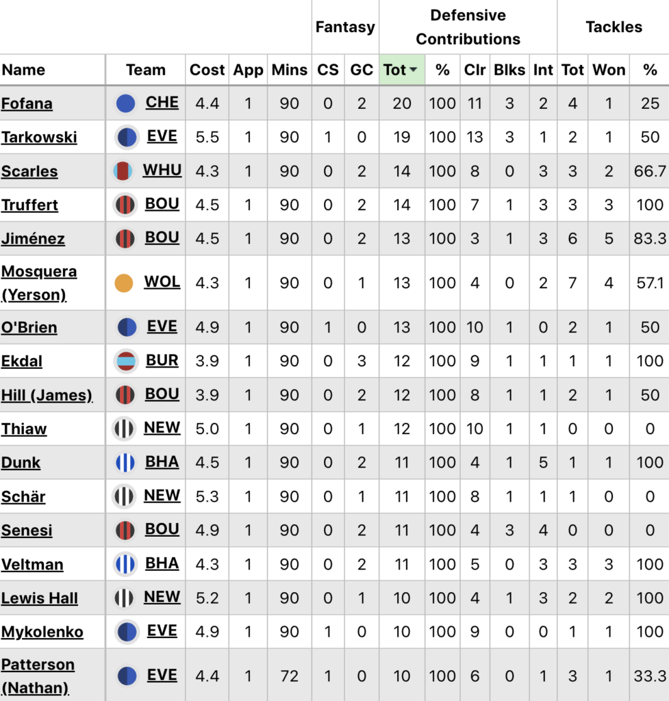 And, new for 2025/26, we’ll also round up Tuesday’s defensive contribution (DC/DefCon) points.
