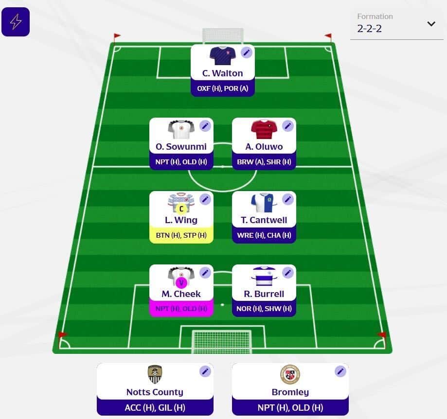 - In defence, my first pick is Adebola Oluwo. Salford City recorded two clean sheets in the previous Gameweek and now face two sides that struggle in attack, which sets up another strong week for him. Alongside him is Omar Sowunmi. Bromley have two home fixtures, giving him strong clean-sheet potential, while his goal threat and clearance points add further upside.