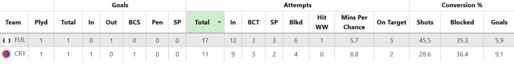 As we can see, the Eagles shipped a huge 17 attempts on goal, along with three big chances.