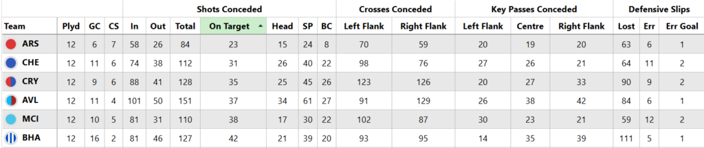 Not only were the Eagles among the best sides for clean sheets, they ranked third best overall for shots conceded.