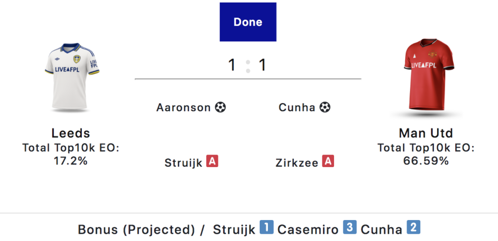Meanwhile, the goals, assists and bonus summaries are from LiveFPL.