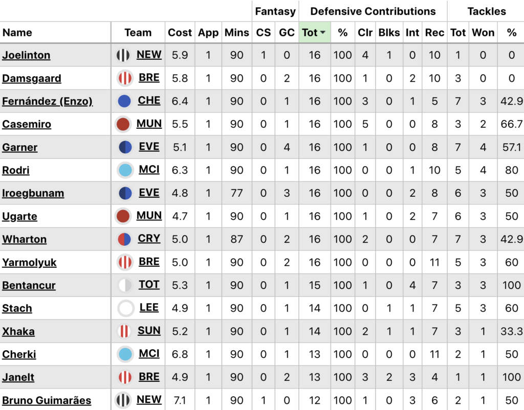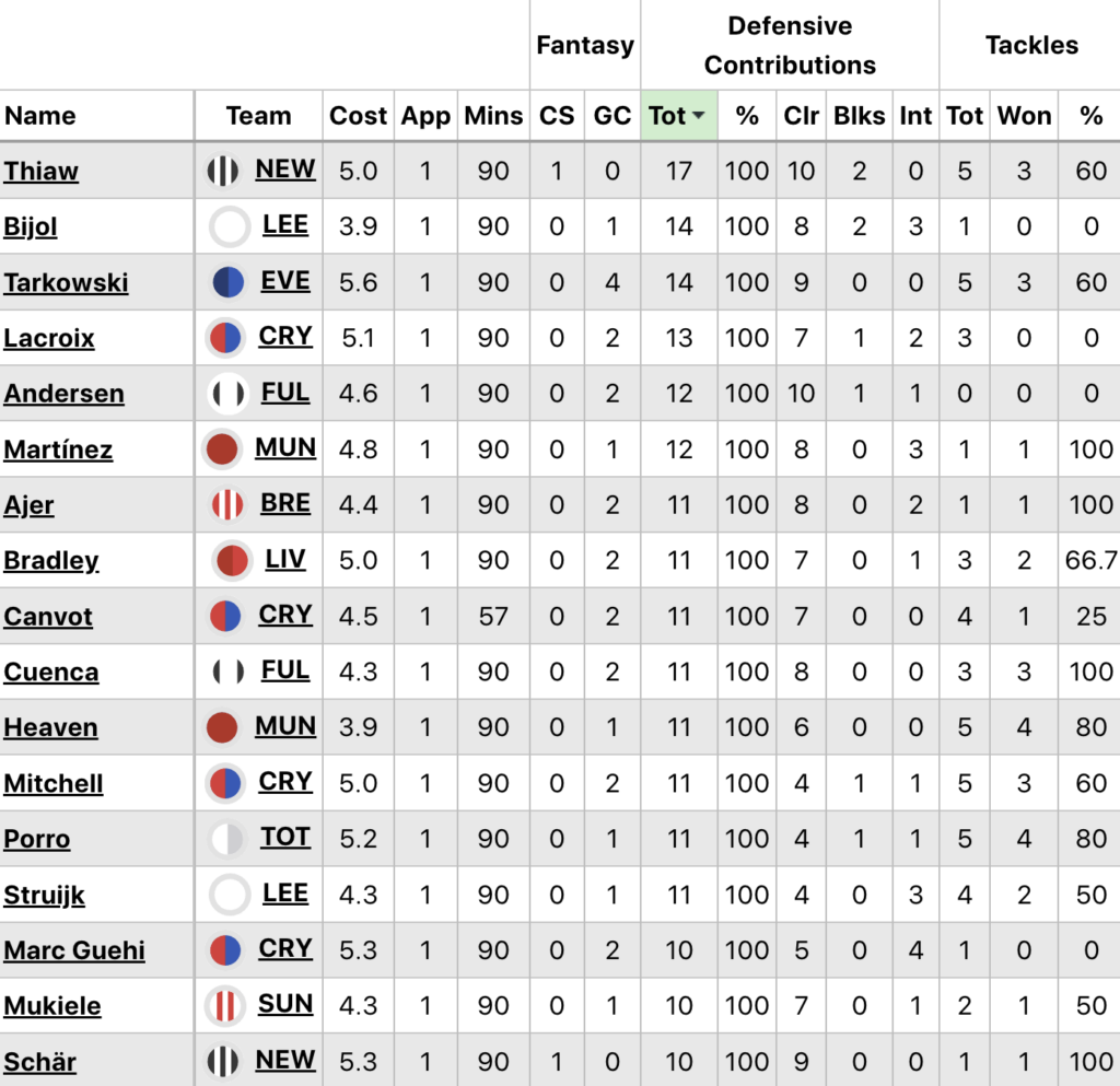 And, new for 2025/26, we’ll also round up Sunday’s defensive contribution (DC/DefCon) points.