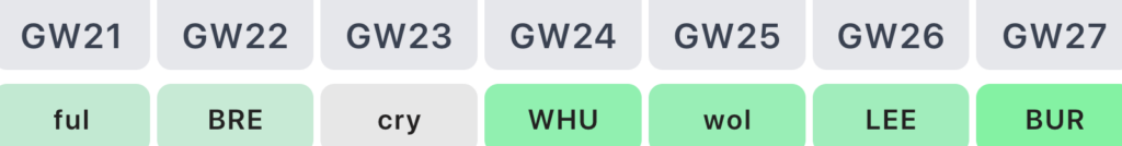 The concern for Pep Guardiola now is that Gvardiol and Dias’ injuries make the backline look threadbare. This should be good news for Nico O’Reilly’s (£5.2m) xMins, but it could also be detrimental to City’s clean sheet potential.