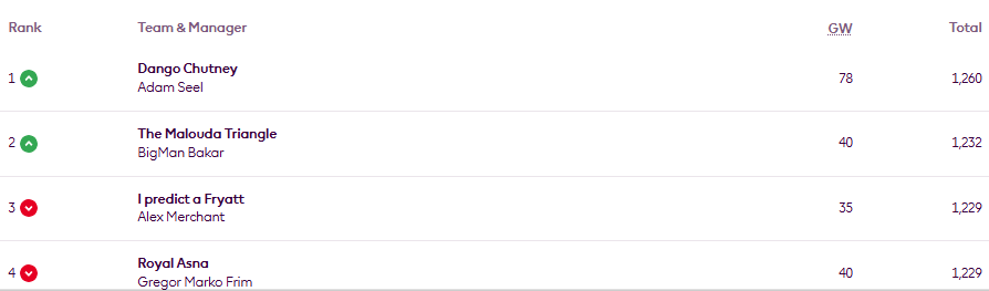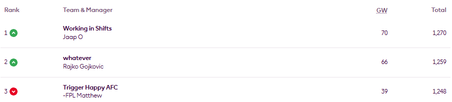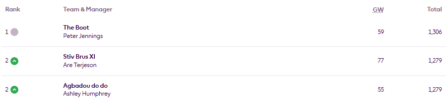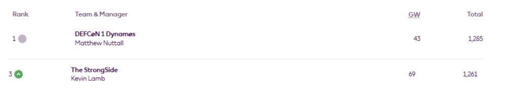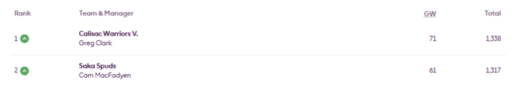 Stuart Brant leads FPL General’s No Salah No Haaland mini-league (league code vnwit5) for a fifth week and has risen to 17k overall after captaining Gabriel Magalhães.