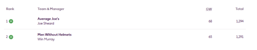 Since the Gameweek 19 update, – elevenify.com and Michael Giovanni have both moved up three places, John Walsh two places and Simon MacNair one place, but Pro – has slipped to 13th.
