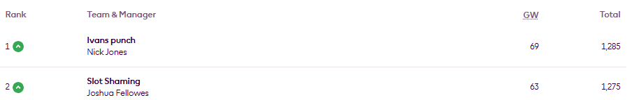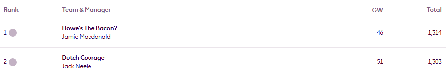 Samuel Swain in League 9 Division 106 and Simon Jones in League 9 Division 256 are the joint highest scorers in the Head-to-Head Leagues with 57 points each.
