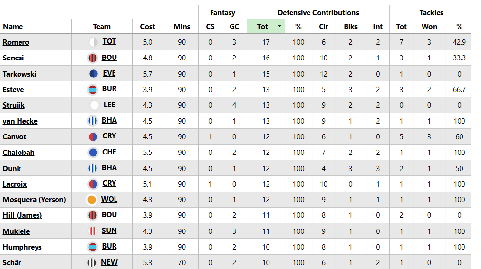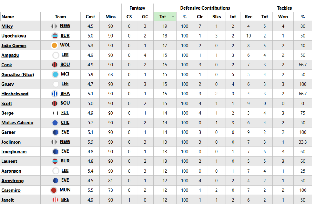 And, new for 2025/26, we’ll also round up Wednesday’s defensive contribution (DC/DefCon) points.