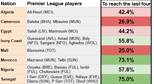 All eight nations that remain at AFCON have at least one Premier League representative.