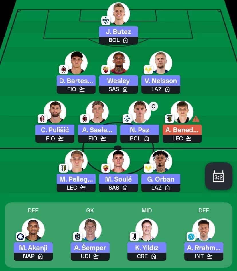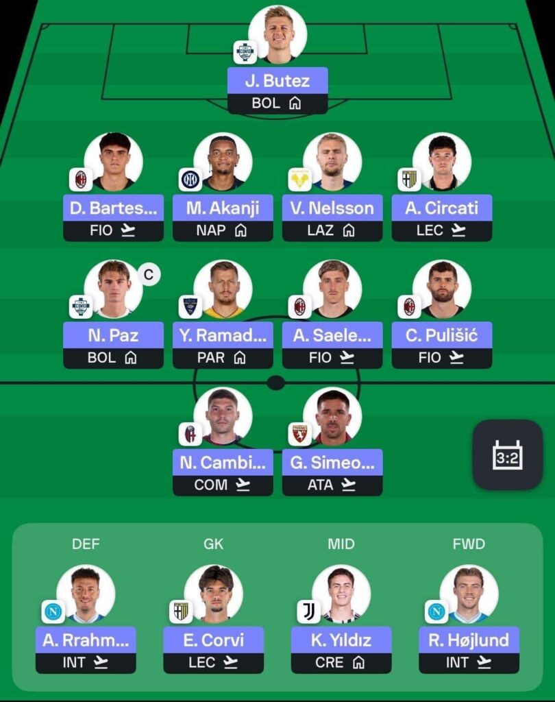 - Pietro Terracciano and Giovane sit at the top of my sell list. Terracciano faces a tough matchup against Juventus and does not feature in the double, which makes him expendable. I’m currently weighing up defensive replacements such as Victor Nelsson of Verona or Alessandro Circati from Parma.