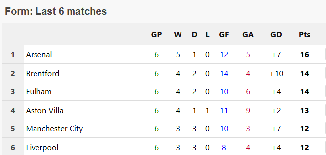Fulham continue to enjoy another solid campaign, sitting ninth in the table. Good recent form has propelled them up the league, with only Arsenal collecting more points over the last six Gameweeks (via Soccerstats):