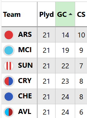 Defence is definitely their strong suit. Only two Premier League clubs have conceded fewer goals (GC, below):