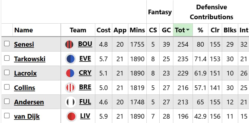 That interest makes sense given his defensive contribution potential. As the data shows, no defender has recorded more DefCons or posted a higher success rate over the same period.