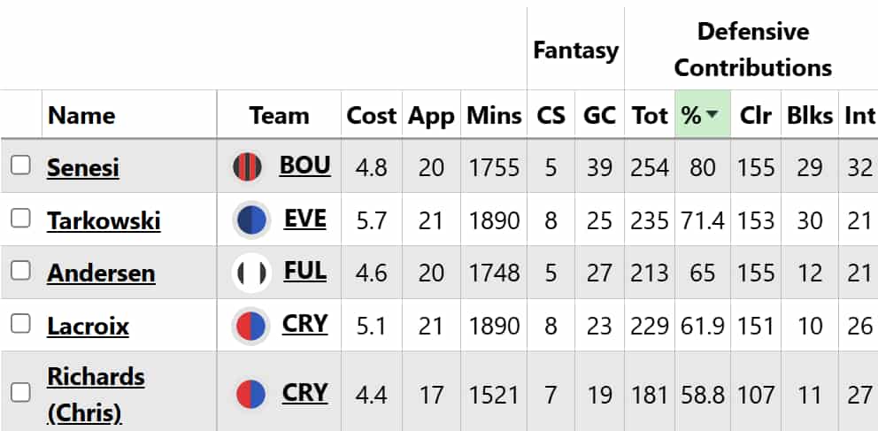It is also worth recalling how effective Crystal Palace defenders can be within this system. Both Richards and teammate Maxence Lacroix (£5.1m) rank inside the top five defenders for DefCon points success rate.