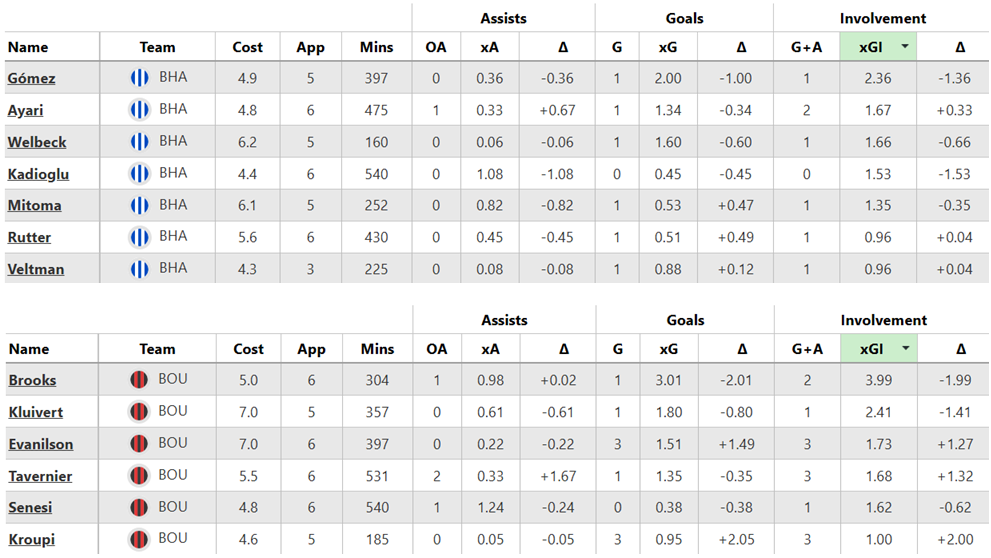 Over their last six Gameweeks, these are both sides’ best players for expected goal involvement (xGI):