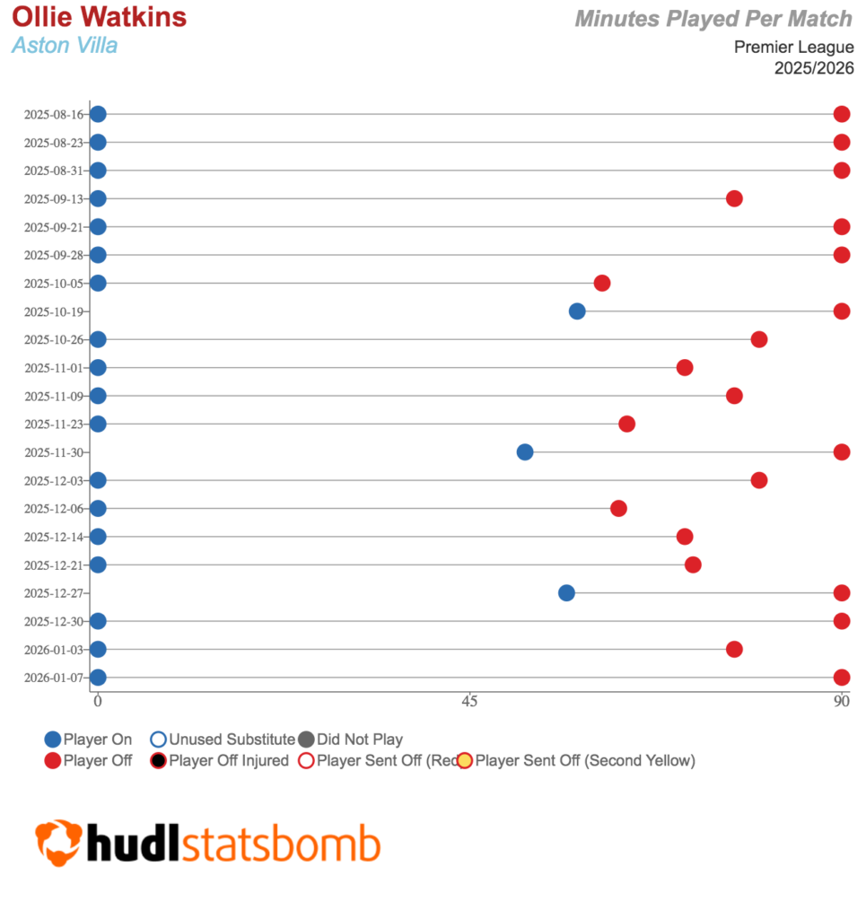 However, the underlying data indicates that Watkins can excel in the upcoming matches, even factoring in a few early substitutions.