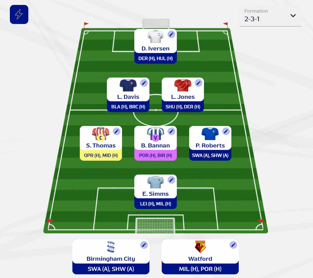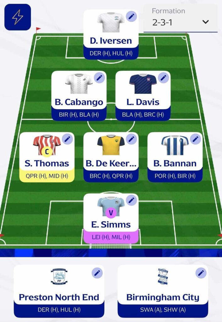 - In midfield, Imran Louza keeps his place. He continues to tick over for points and benefits from a very kind set of fixtures. Barry Bannan also feels like one of those dependable selections. He often picks up returns without much fuss, and two home matches only strengthen his appeal. I’ve also gone with Sorba Thomas, who remains one of the Championship’s standout assets and has favourable fixtures to work with.