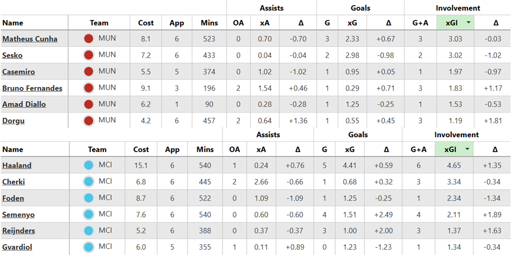 Over their last six Gameweeks, these are both sides’ best players for expected goal involvement (xGI):