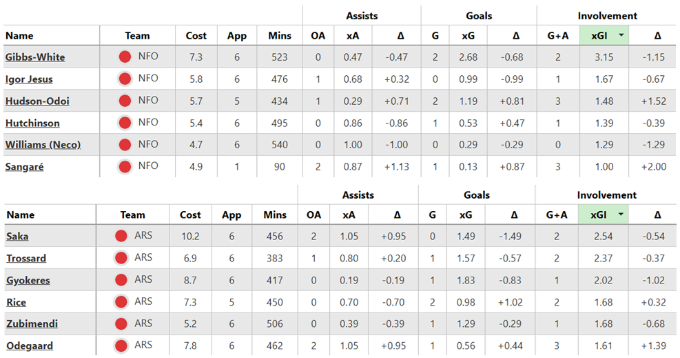 Over their last six Gameweeks, these are both sides’ best players for expected goal involvement (xGI):