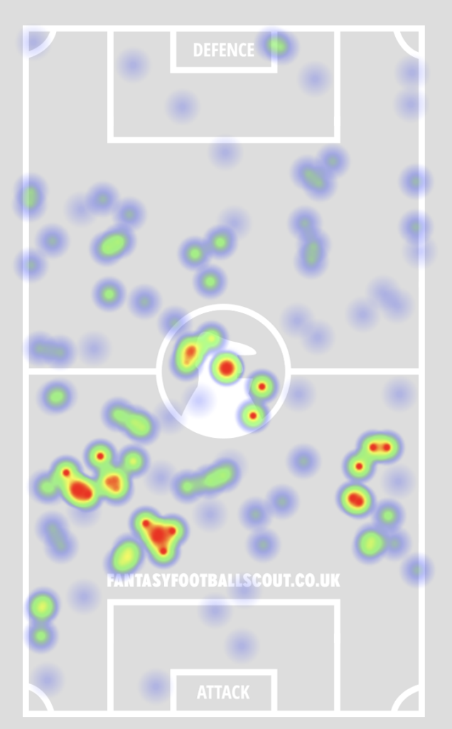 Above: Bruno Fernandes’ touch heatmap during his time under Carrick in 2021/22