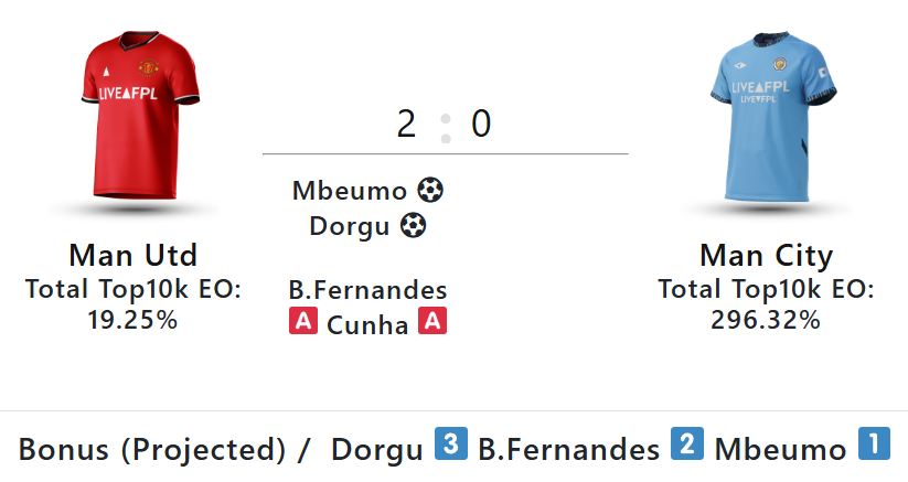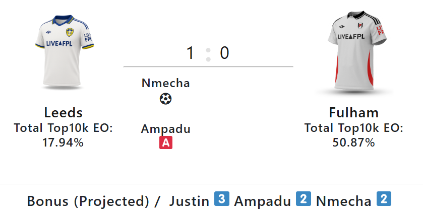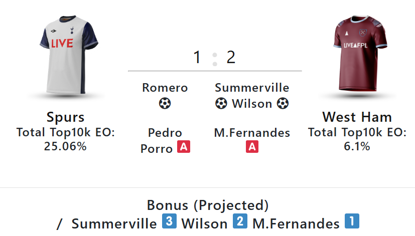 Meanwhile, the goals, assists and bonus summaries are from LiveFPL.