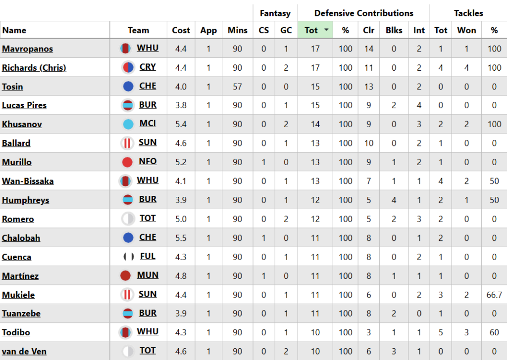 And, new for 2025/26, we’ll also round up Saturday’s defensive contribution (DC/DefCon) points.