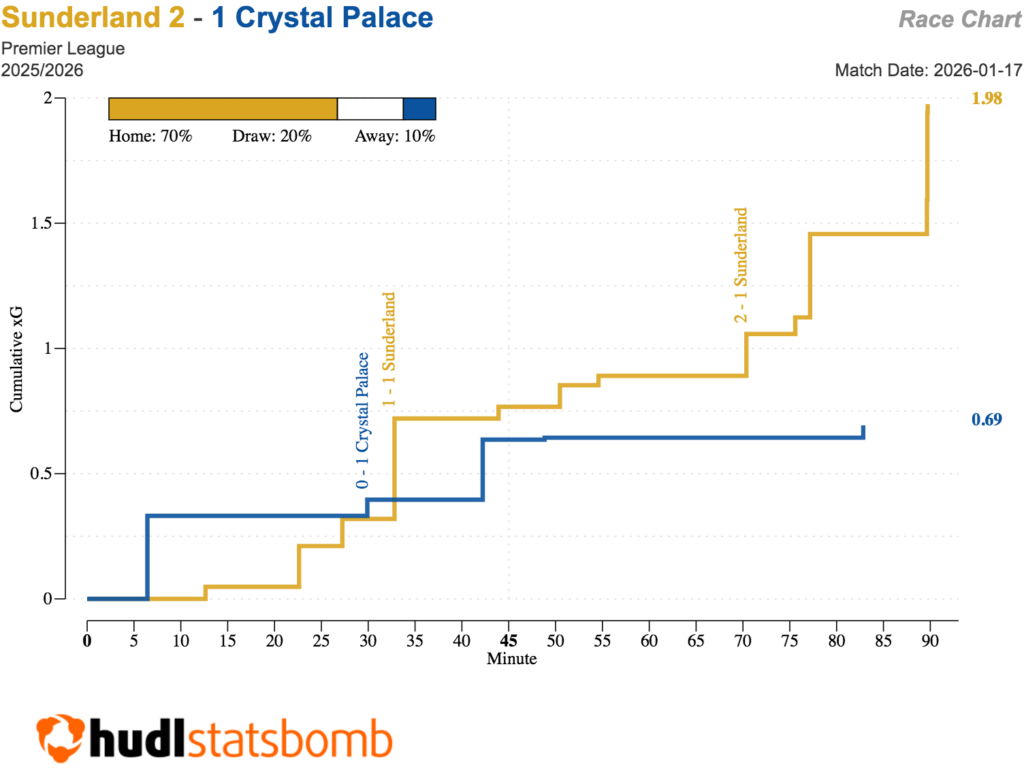Defensively sound, particularly after the break, Sunderland restricted Palace to just 0.69 expected goals (xG).