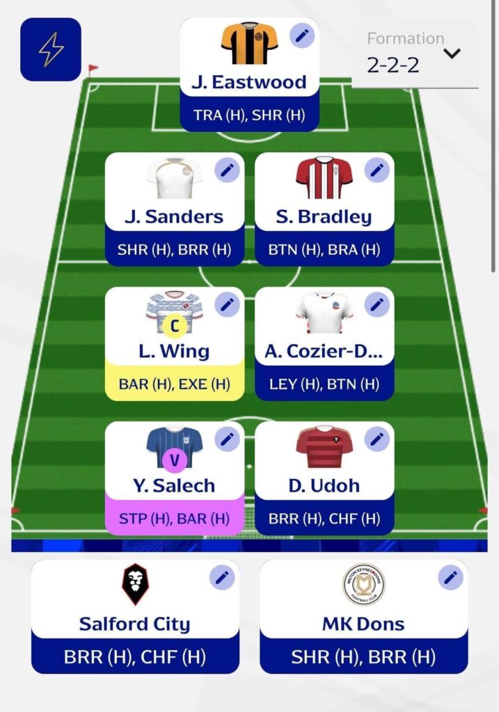 - Up front, I’m running with two Daniels. Daniel Kanu arrives in strong form and benefits from two attractive home fixtures. Alongside him sits Daniel Udoh, who has looked dangerous throughout the season, with Salford continuing to impress going forward.