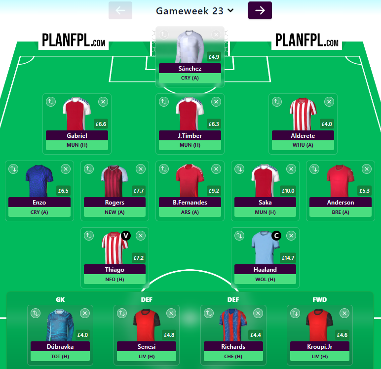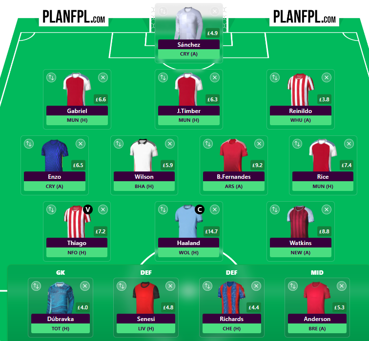 It puts attackers like Bruno Fernandes (£9.2m) and Enzo Fernandez (£6.5m) on radars, while defenders Marcos Senesi (£4.8m) and Trevoh Chalobah (£5.5m) gain popularity. A Wildcard also gives a chance to perfect the double- or triple-up of Gunners assets, if David Raya (£5.9m) feels too expensive.