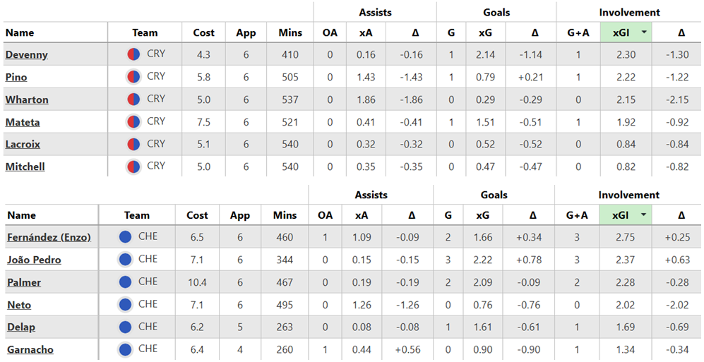 Over their last six Gameweeks, these are both sides’ best players for expected goal involvement (xGI):
