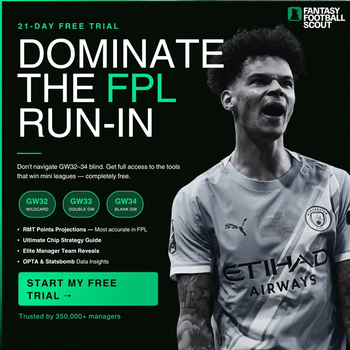 Antoine Semenyo (£7.7m) and fellow new signing Marc Guehi (£5.2m) should play, though. Neither were eligible for Man City’s Champions League defeat to Bodo/Glimt, explaining why they’re both unanimous Scout Squad picks.