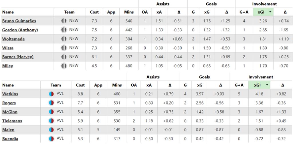 Over their last six Gameweeks, these are both sides’ best players for expected goal involvement (xGI):