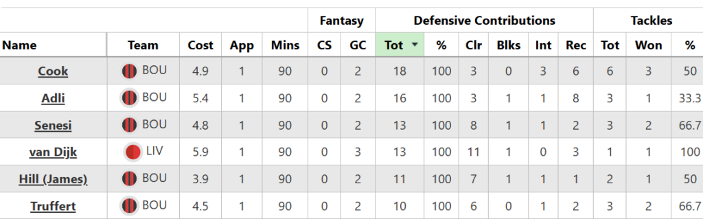Virgil van Dijk (£5.9m) was at fault for the goal that led to Gomez’s injury, then played Alex Jimenez (£4.5m) onside for the second. Despite the stinker, he’s on course for his biggest FPL score of the season. The Dutchman nodded in a corner for his first league goal of 2025/26, while he also looks set to get DefCon points after the next refresh: