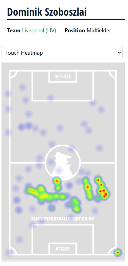 Set pieces, long-range attempts and minutes are pretty much it with Szoboszlai. He again didn’t have a shot in the box (the 13th league match in 2025/26 that that’s happened), so you’re reliant on the dead eye from distance.