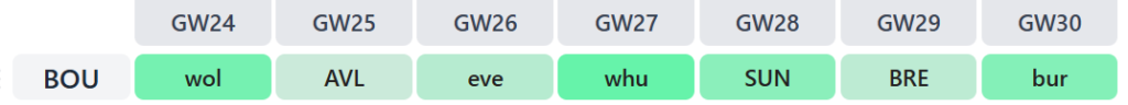 Mid-December adopters of Dominik Szoboszlai (£6.6m) have had little to shout about. He’d averaged 2.0 points per match between Gameweeks 16-22, also missing out in one of those weeks due to suspension.