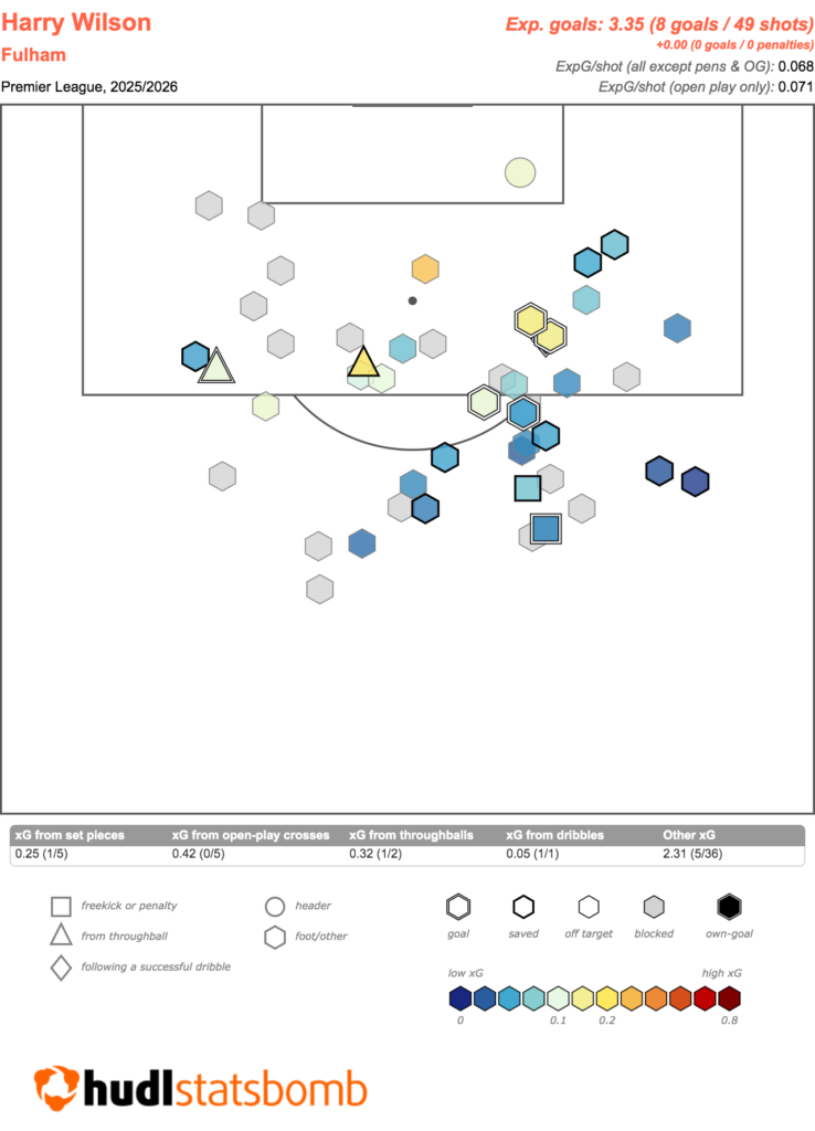 Harry Wilson (£6.0m) is the Premier League’s top expected goals overachiever, having scored eight goals from 3.35 xG.