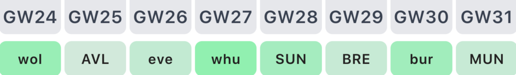 • Sat 7 Feb: Wolves (a) – Gameweek 25
