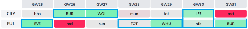 If you’ve already got Joachim Andersen (£4.6m), Richards’ upcoming fixtures dovetail beautifully with those of Fulham: