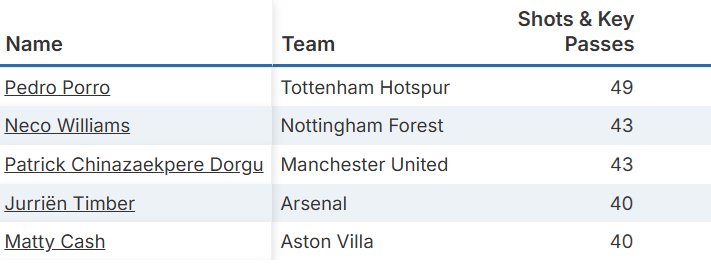 Cash is among the top five defenders for shots and key passes combined, meanwhile: