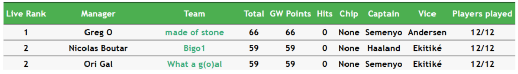 Fellow Semenyo captainer Adam Seel leads Livinginapool’s Top 100 Any Season mini-league (code 5xdeje) for a fourth week.