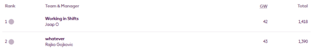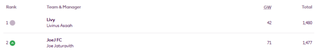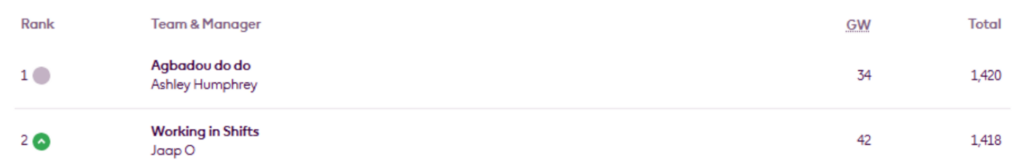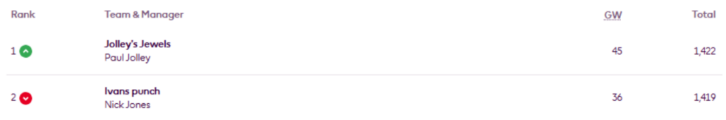 Since the Gameweek 22 update, Ben Crellin and Tom Dollimore have both overtaken – elevenify.com to reclaim the top two spots, Uz Ray has moved up two places, Abinav C has risen one place, and Pro – is back in the top 10. But Harry Daniels has slipped to 12th.